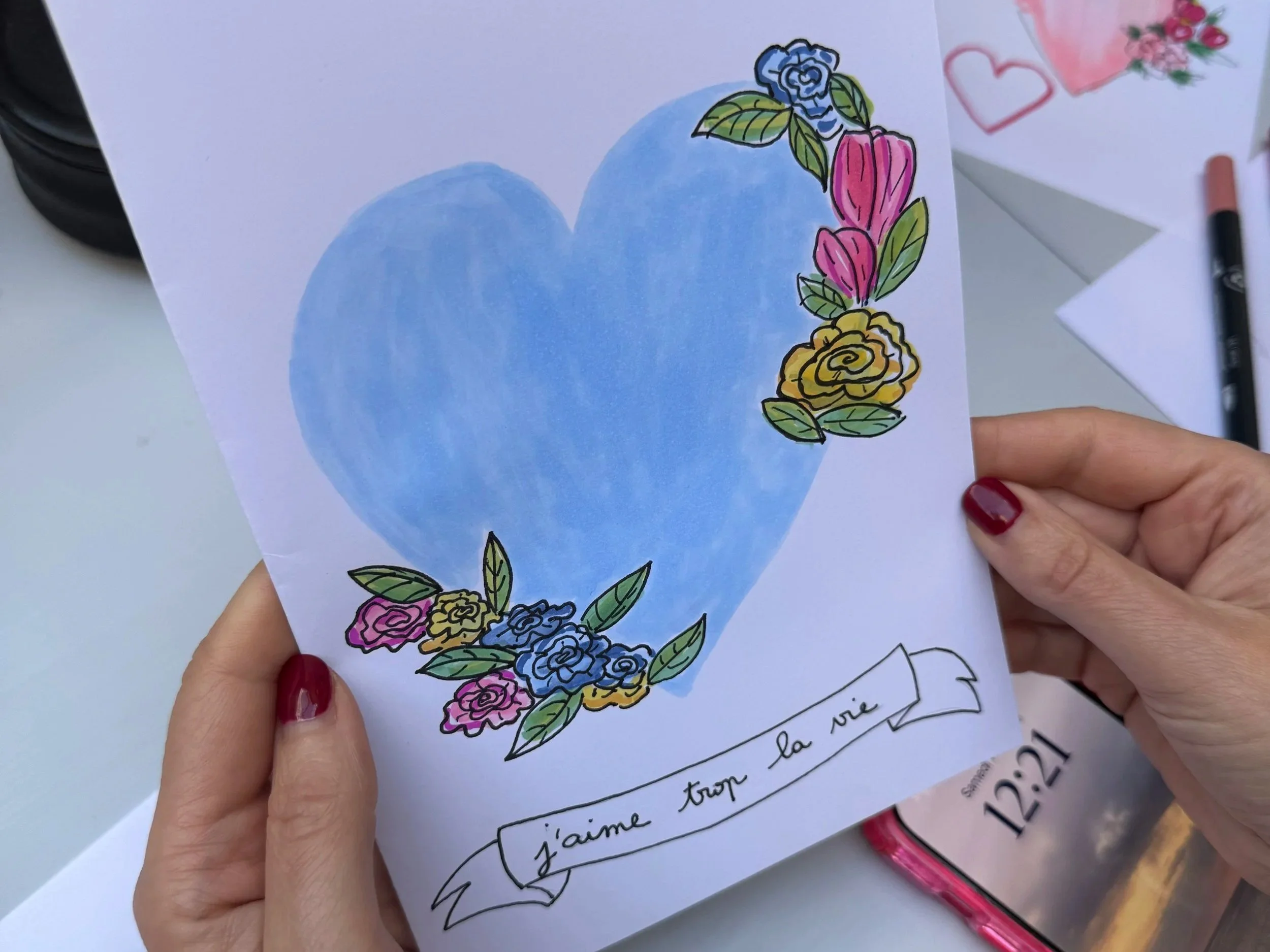 Fleurs vibrantes, cœurs sacrés et gestes spontanés ont pris vie sur le papier, laissant à chacun·e une œuvre unique et un doux souvenir de ce moment créatif, porté par l’énergie solaire de Zak.